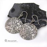 These handcrafted sterling silver earrings have a simplistic, modern style that is perfect for everyday wear because they go with everything. They have an abstract hand stamped texture that was oxidized to highlight the details. Lightweight and comfortable to wear, they'll coordinate beautifully with all wardrobe styles.